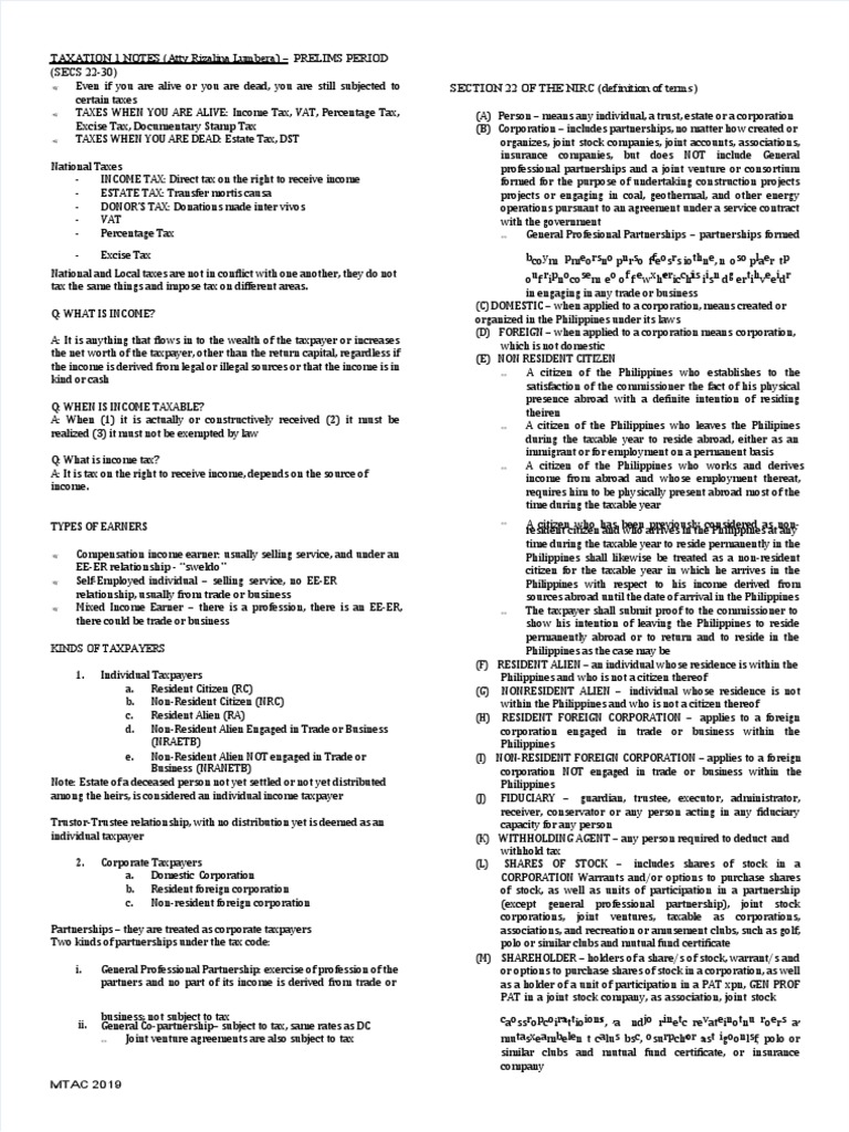 Pdf Taxation 1 Notes Gross Income Securities Finance