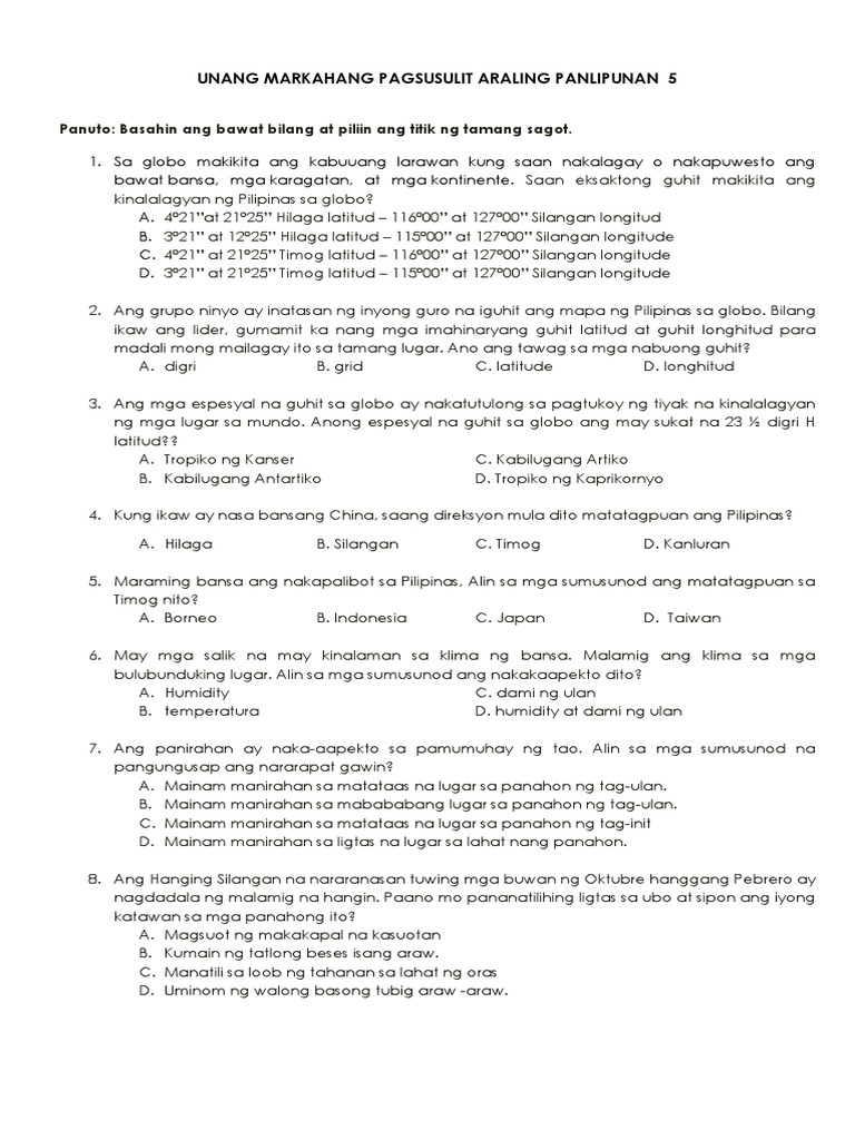 G5 Unang Markahang Pagsusulit Sy 2019 20201